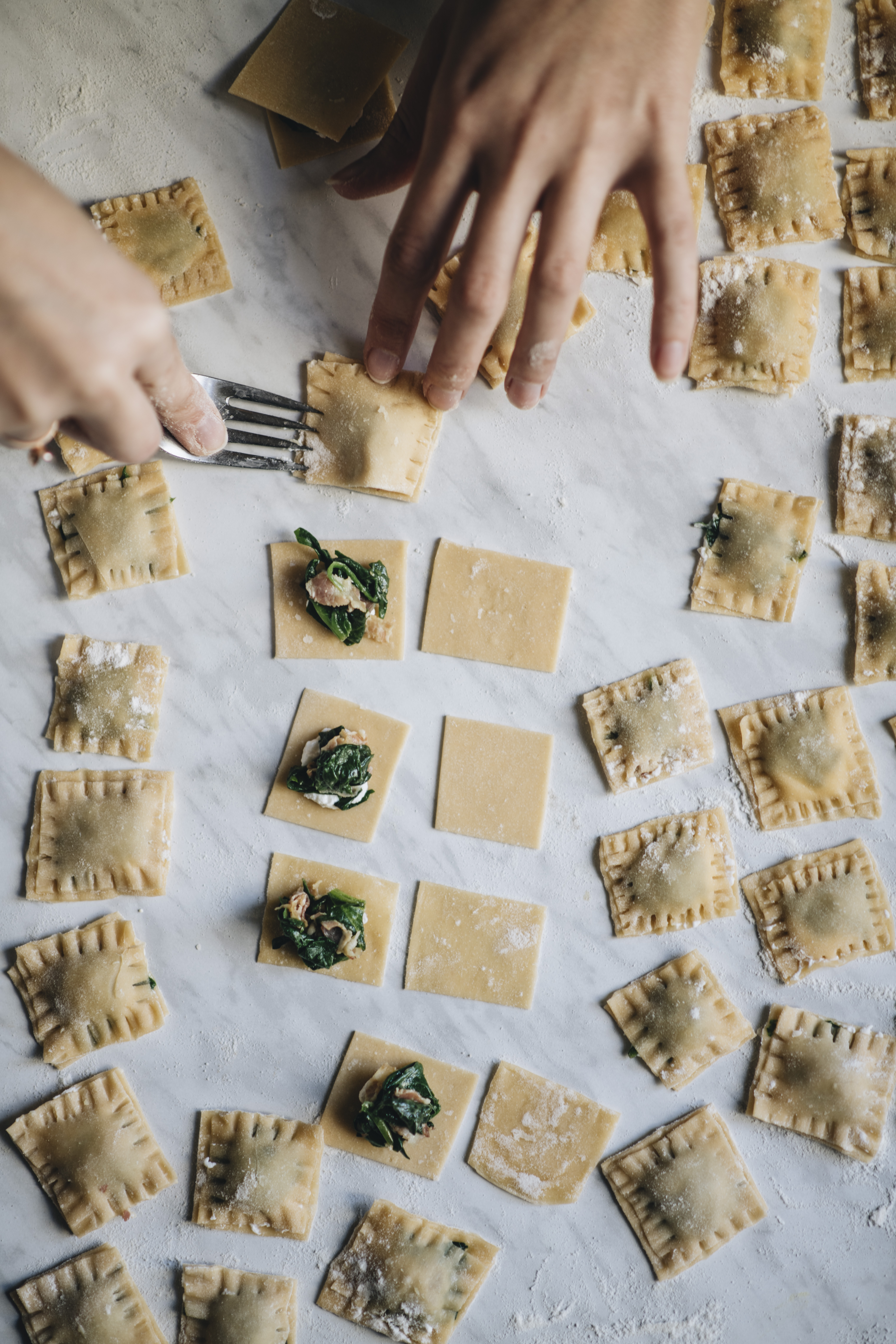 Ravioli s ricottou, pancettou a špenátem