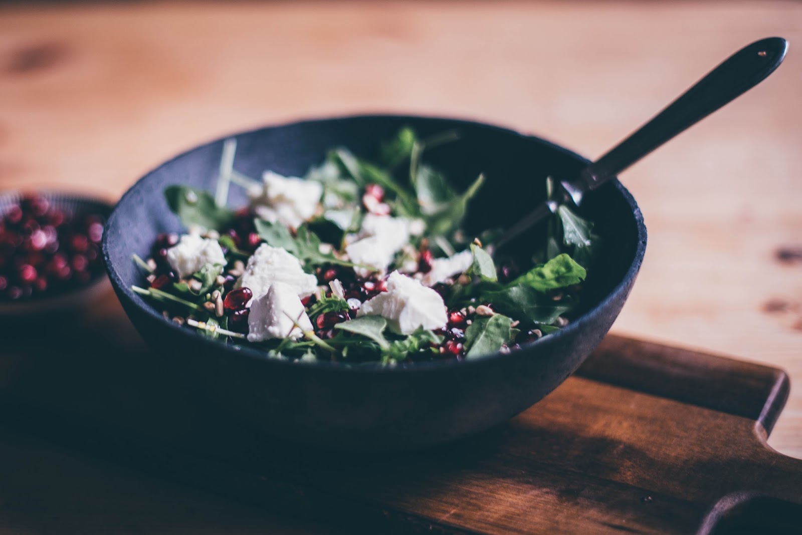 Pro přípravu si nejprve na mírném ohni opražíme slunečnicová semínka. Já je mám vážně moc ráda, tak si většinou opražím větší množství a pak je schovávám ve vzduchotěsné nádobě. Dále si vyloupeme zrníčka granátového jablka. (Zákaz bílého oblečení!!) No a nakonec nám stačí opláchnout a osušit rukolu.