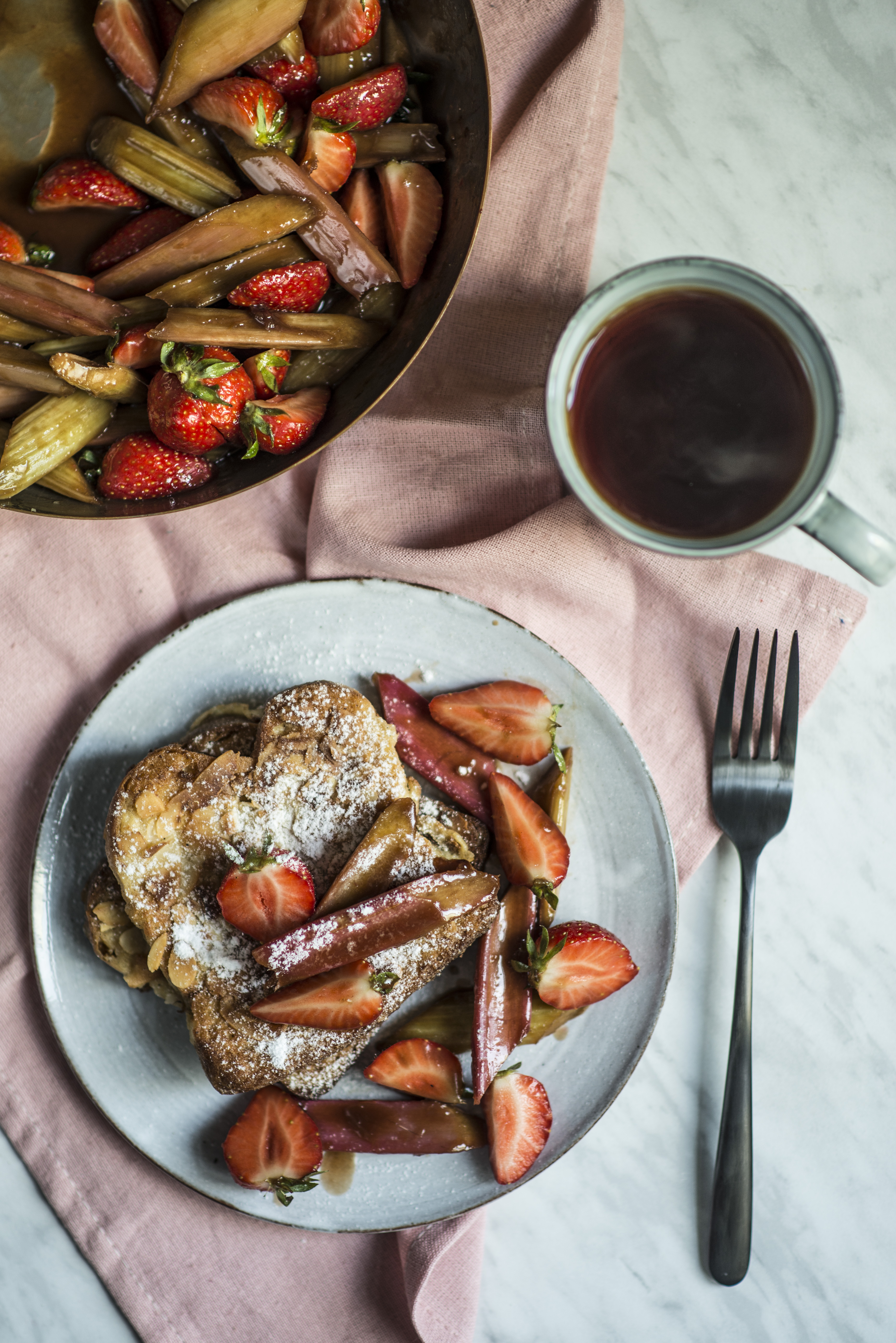 Francouzské toasty s rebarborou a jahodami