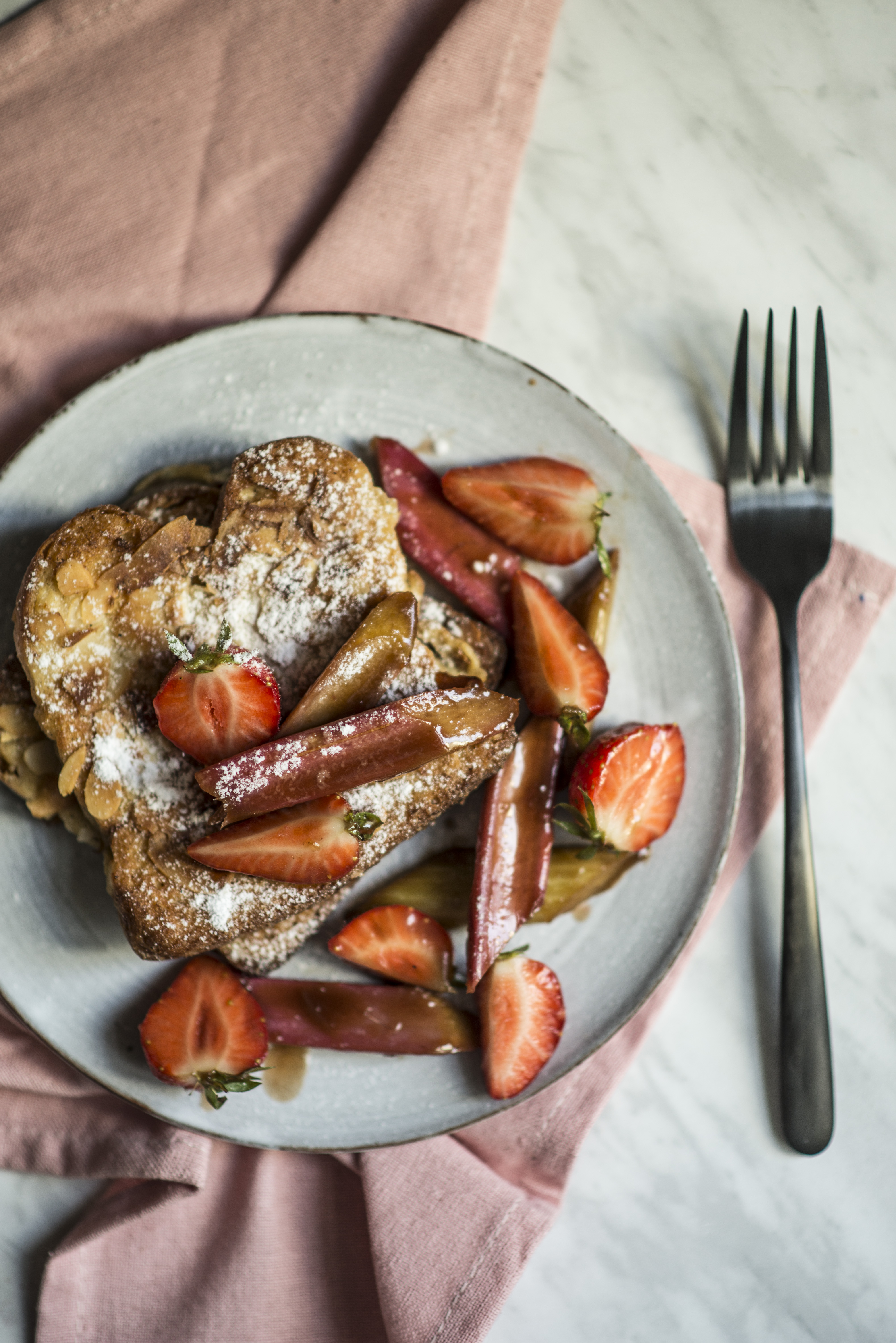 Francouzské toasty s rebarborou a jahodami