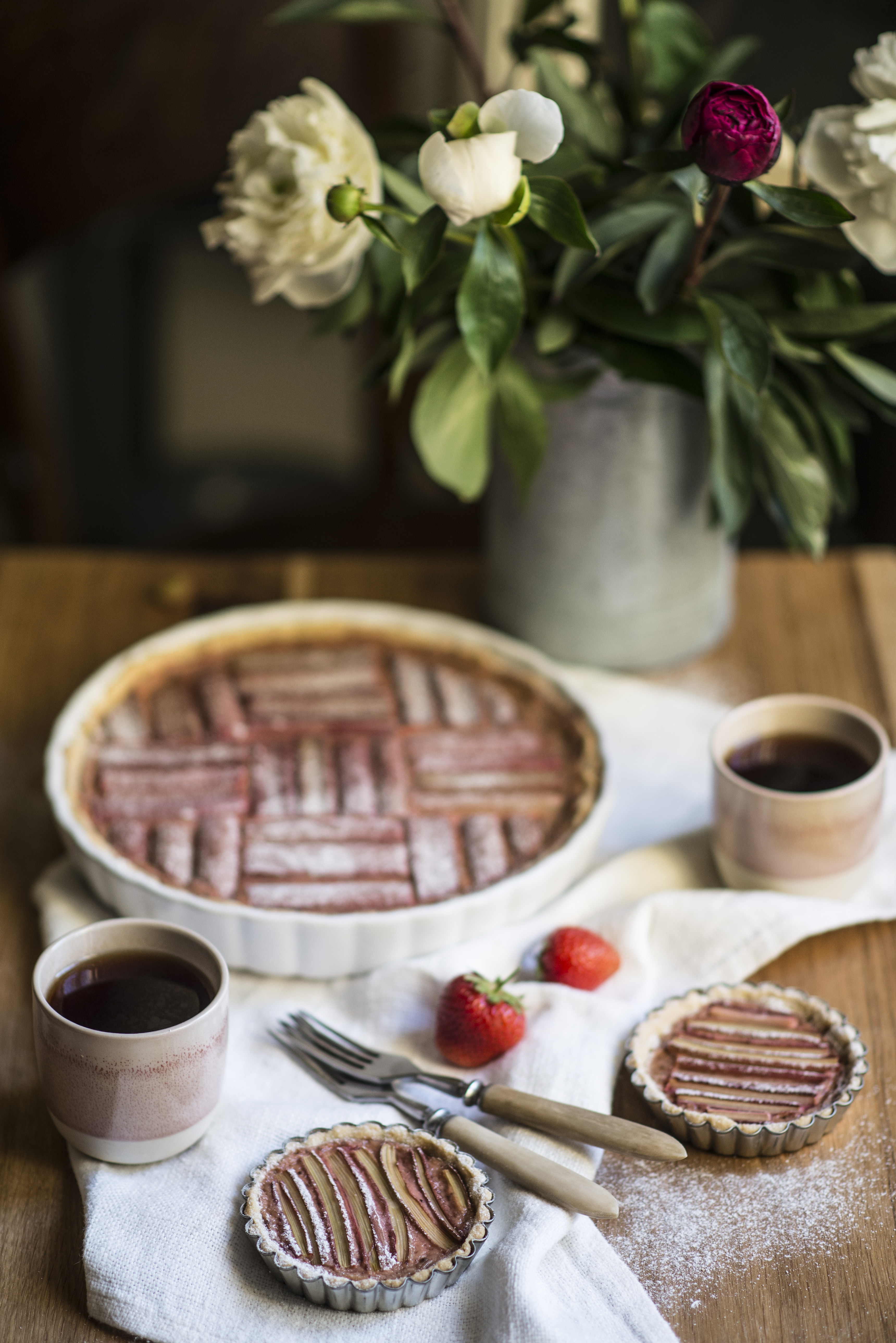 Rebarborový koláč s jahodovým pudingem